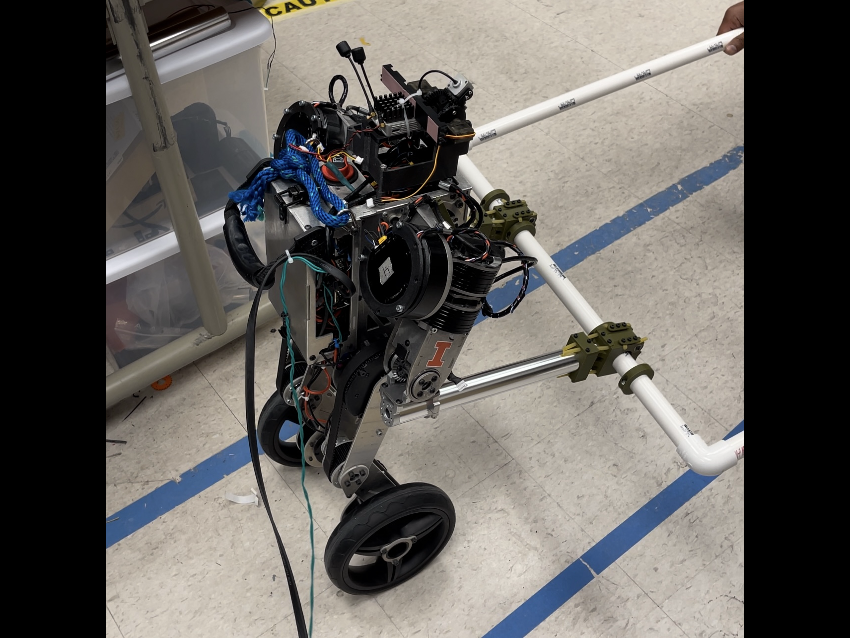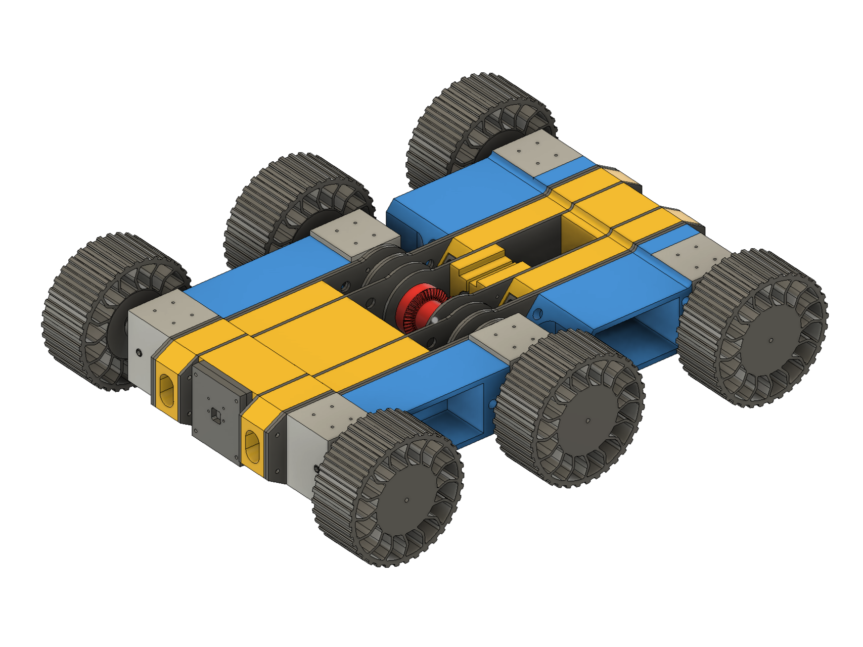 This is a 6-wheel off-roading robot prototype designed to climb the stairs and withstand high impact from falling.