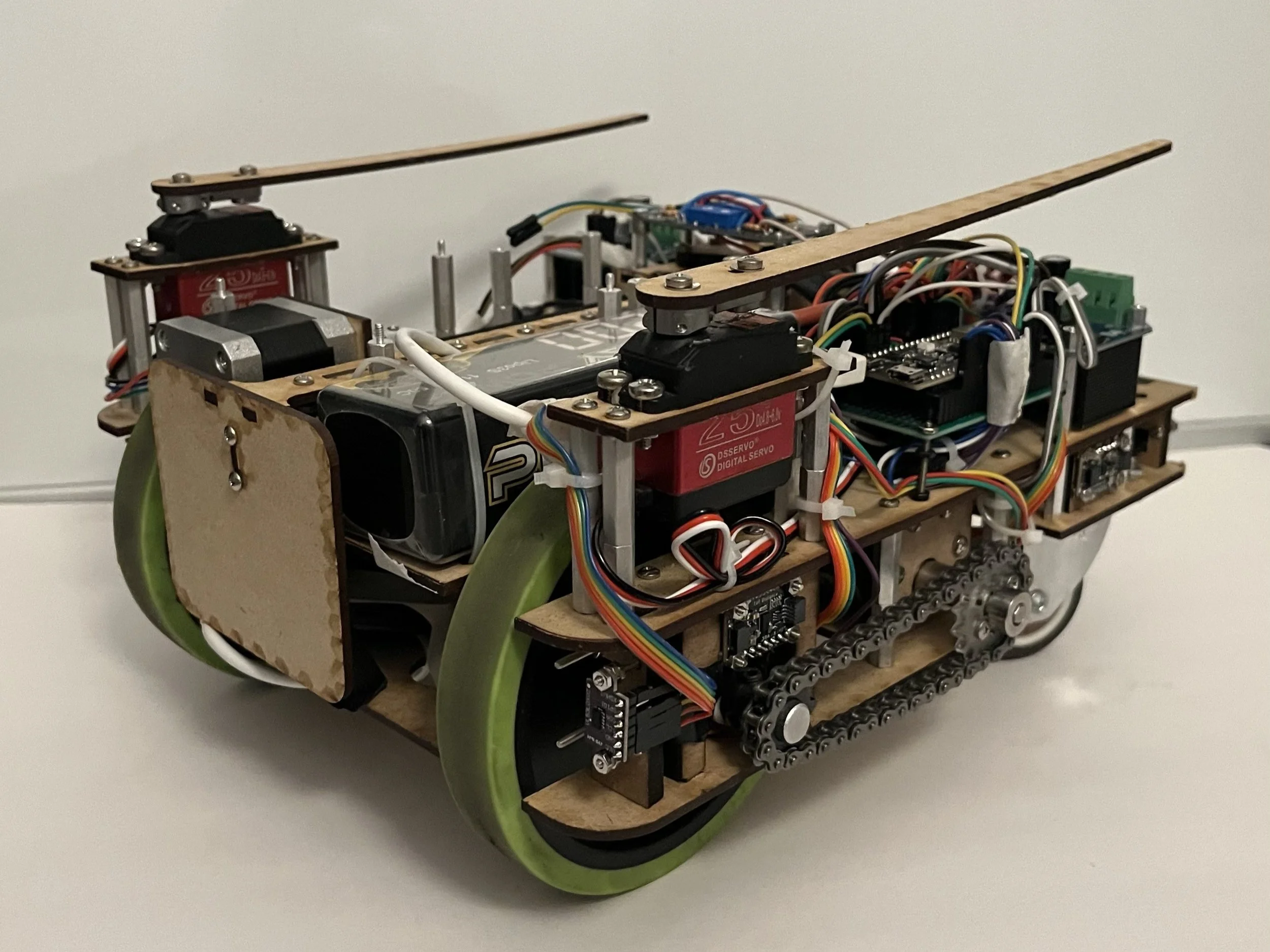 This is a battlebot designed to compete in the League of Legend fashion. It is able to drive autonomously using HTC VIVE position tracking and time-of-flight sensors