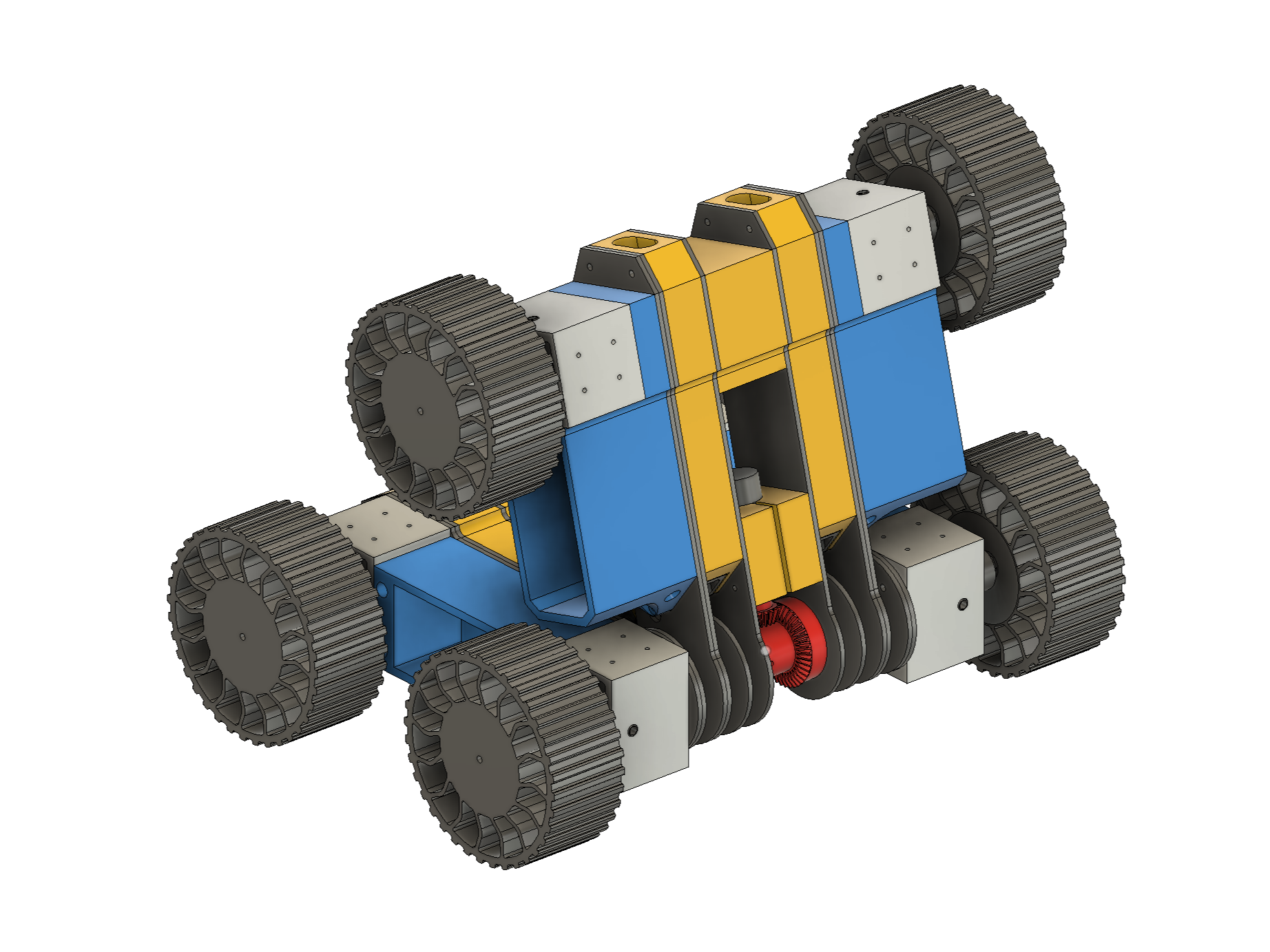 This Off-road robot was initiated during Undergraduate Summer Research Grant at Texas A&M University in 2023. My main contribution was the entirety of the mechanical design with the mechanical integration of all the electronics. This prototype was developed to prove the concept of an impact resistant wheeled robot capable of withstanding the impact from falling from the second floor and climbing obstacles higher than the robot, such as staircases. The chassis is made of carbon fiber and 3D printed PLA. 3D printed TPU was used in the tires and suspension to absorb the impact.