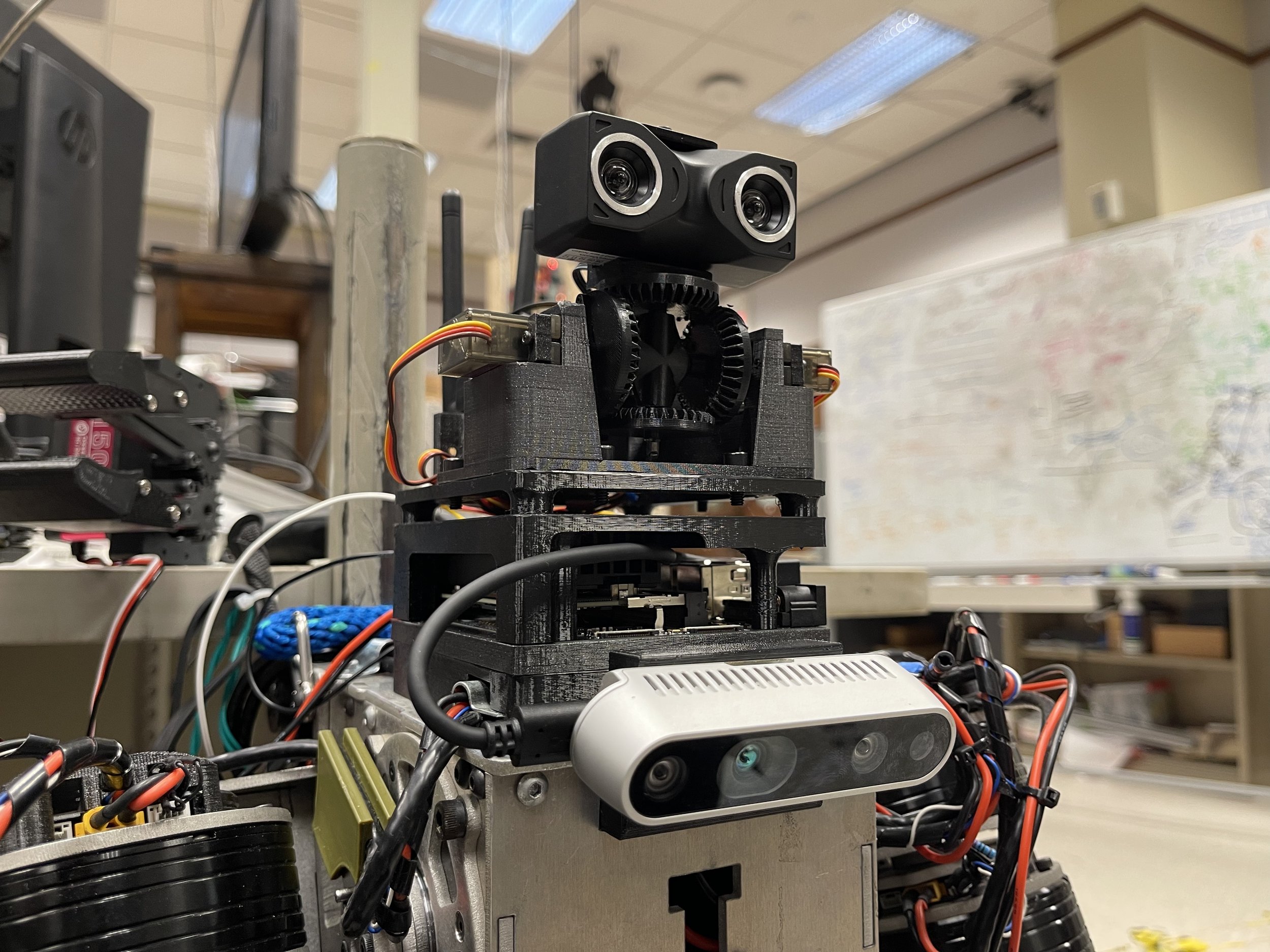 This head tracking unit takes orientation data from an IMU mounted onto the VR goggle that teleoperator wears to rotate the camera to the direction that teleoperator looks at. My contribution of this project is the mechanical design of IMU mount on the VR module and the structure that holds the camera, servo, the differential bevel gears, and the NVIDIA Jetson Orin Nano Developer Kit. This system had significant improvement over the previous design in reliability and versatility due to the modular design with the emphasis on cooling a high safety factor.